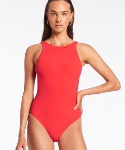 Jets Women’s One Piece Swim Isla Rib High Neck One Piece – Russet