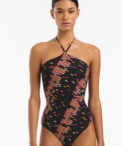 Jets Women’s One Piece Swim Tirari Nights High Neck One Piece – Black | Black