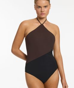 Jets Women’s One Piece Swim Versa High Neck Halter One Piece – Black/chocolate