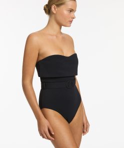Jets Women’s One Piece Swim Isla Rib Fold Down Bandeau One Piece – Black | Black