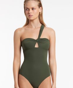 Women’s One Piece Swim Jetset One Shoulder One Piece – Black