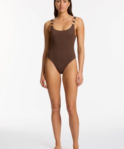 Jets Women’s One Piece Swim Tirari Nights Scoop Neck One Piece – Chocolate | Chocolate
