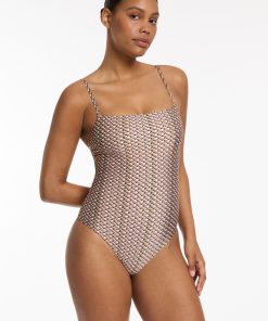 Jets Women’s One Piece Swim Tirari Nights Scoop Neck One Piece – Chocolate | Chocolate