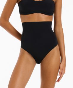 Jets Women’s Isla Rib High Leg Bikini Bottom – Black | Black