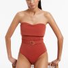 Jets Women’s Bikini Bottoms Isla Rib Fold Down Bandeau One Piece – Russet