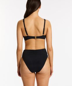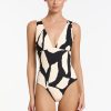 - Deep plunge neckline