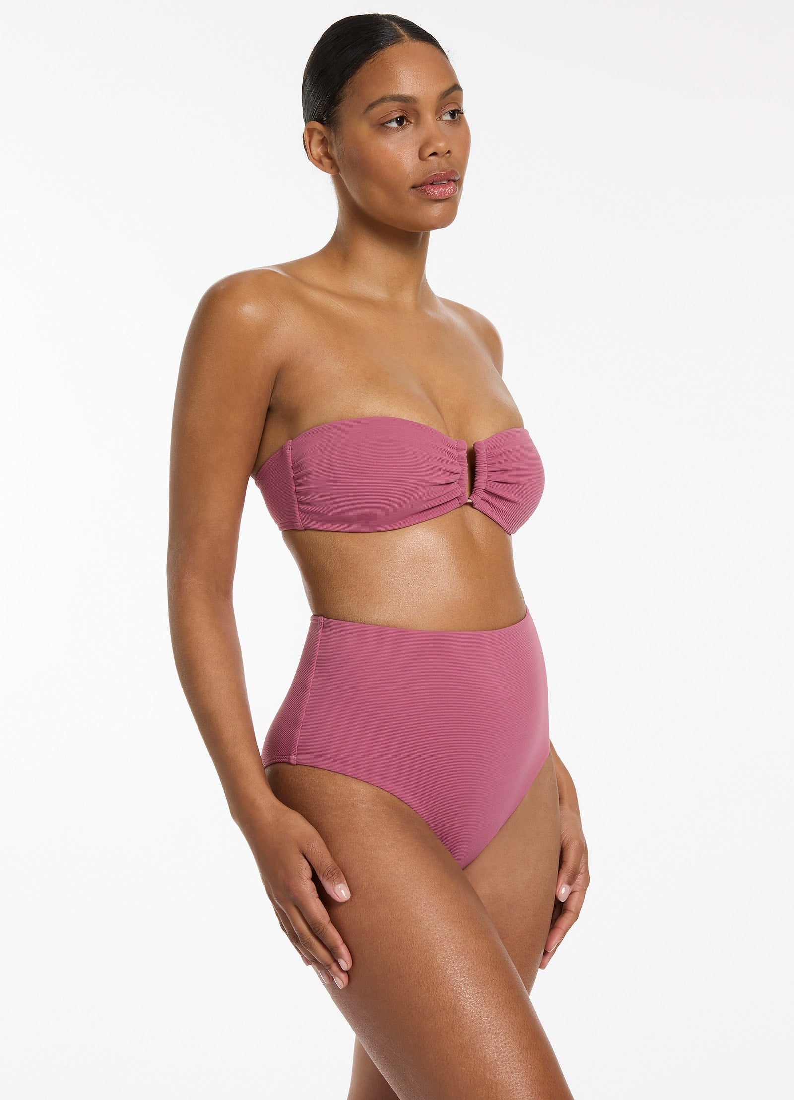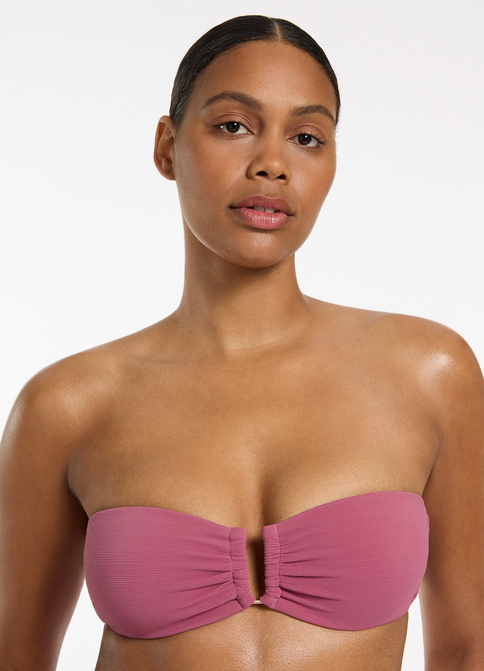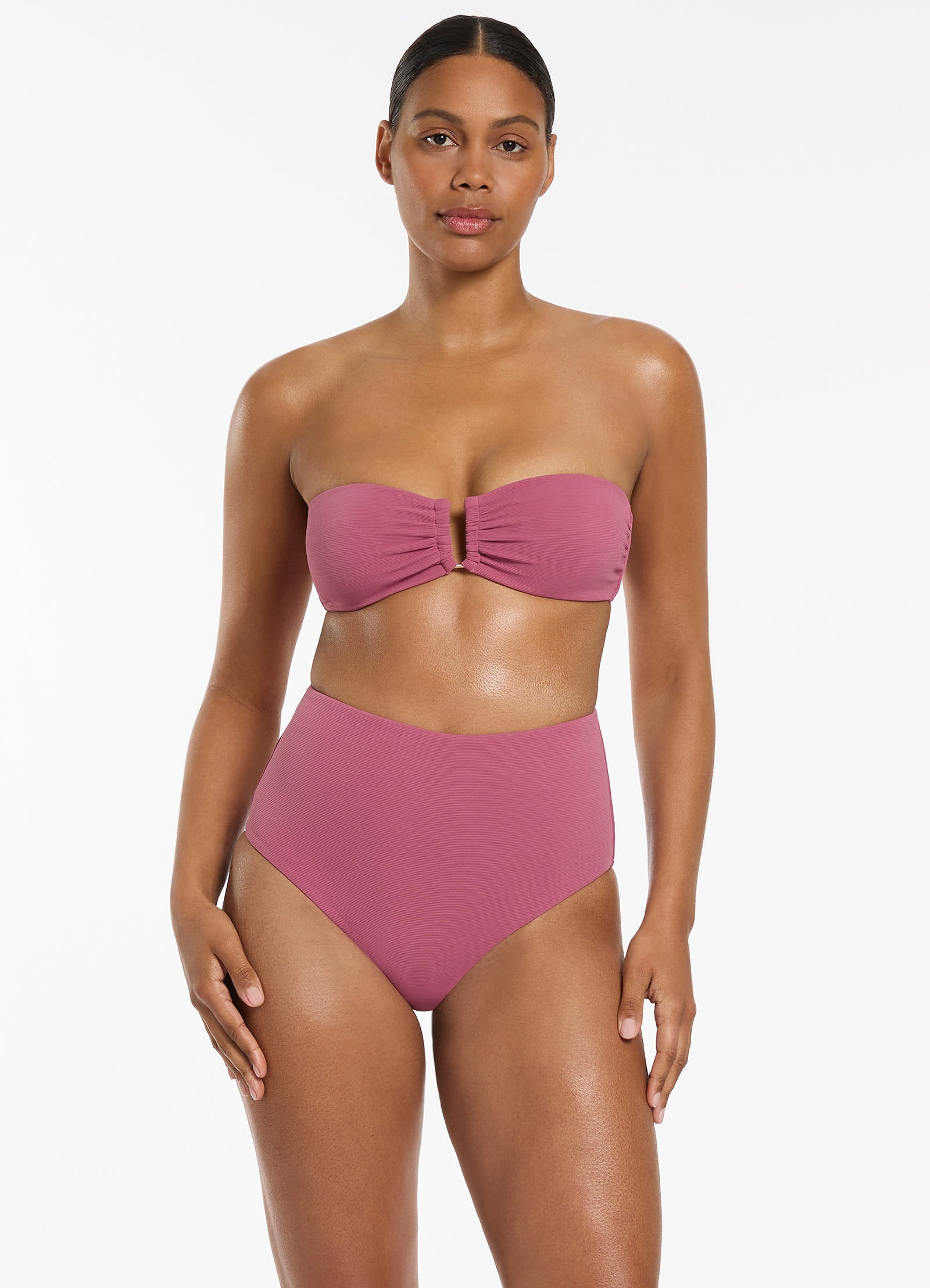 Jets Women’s Isla Rib U Trim Bandeau Bikini Top – Mauve