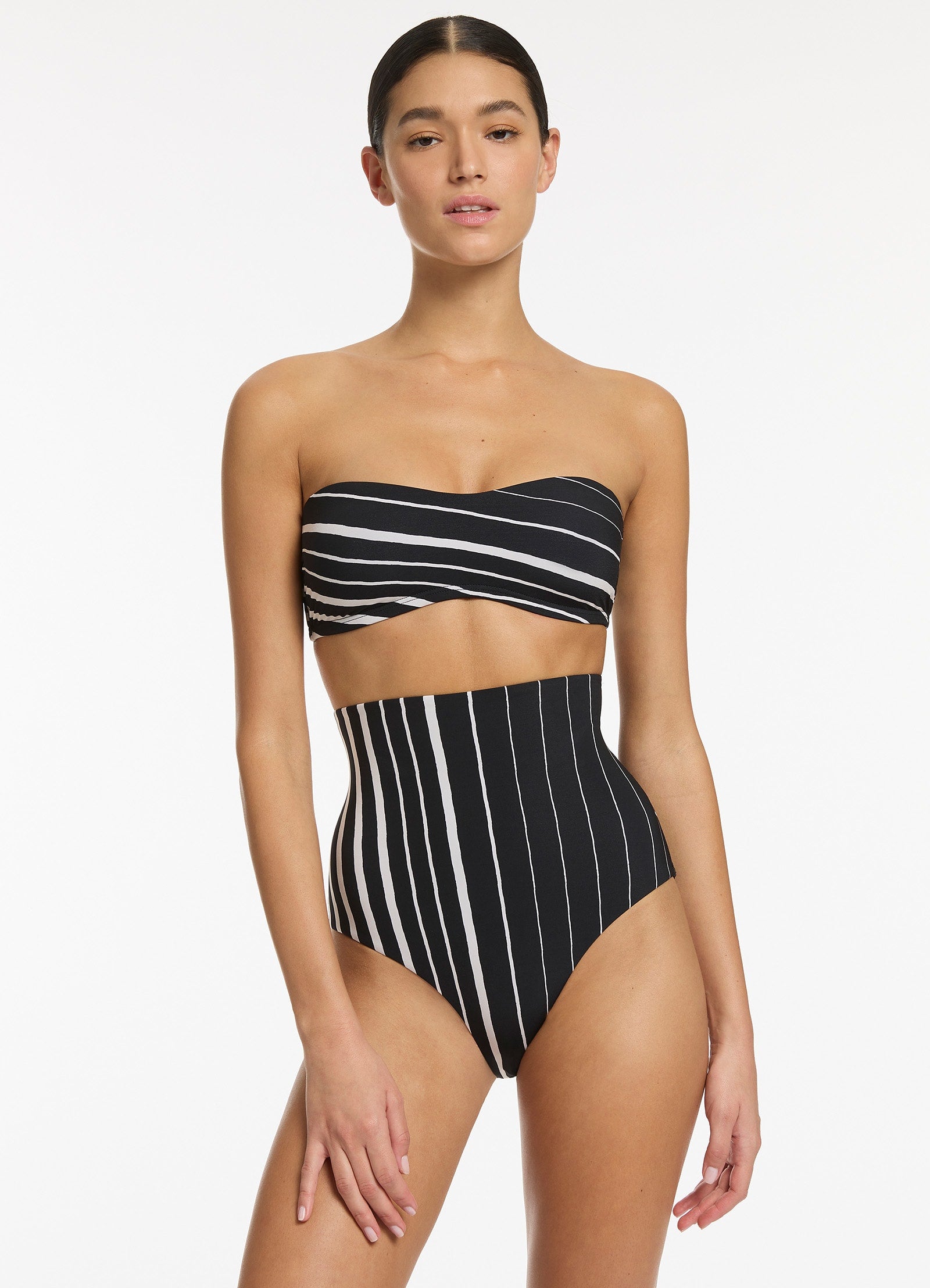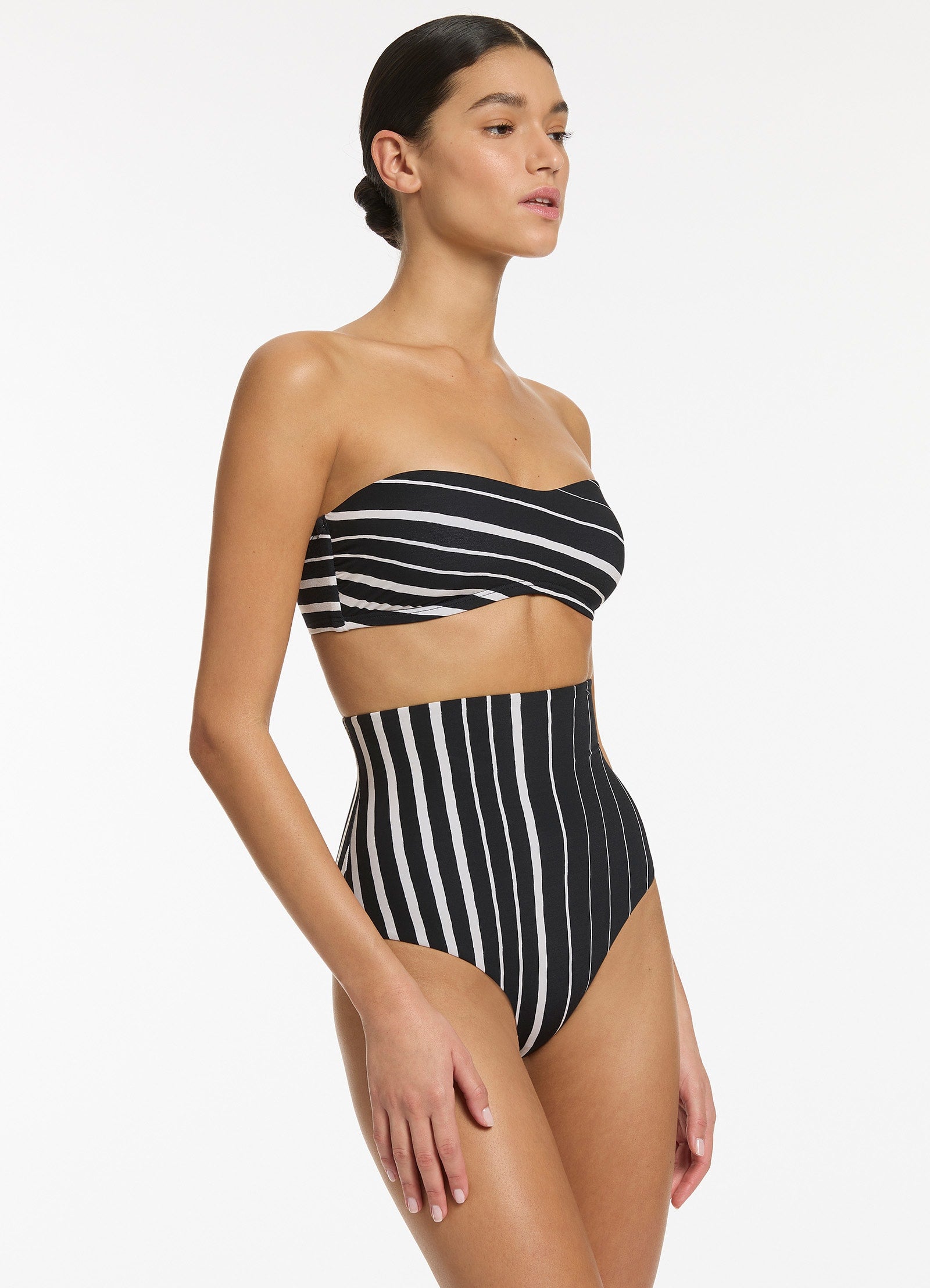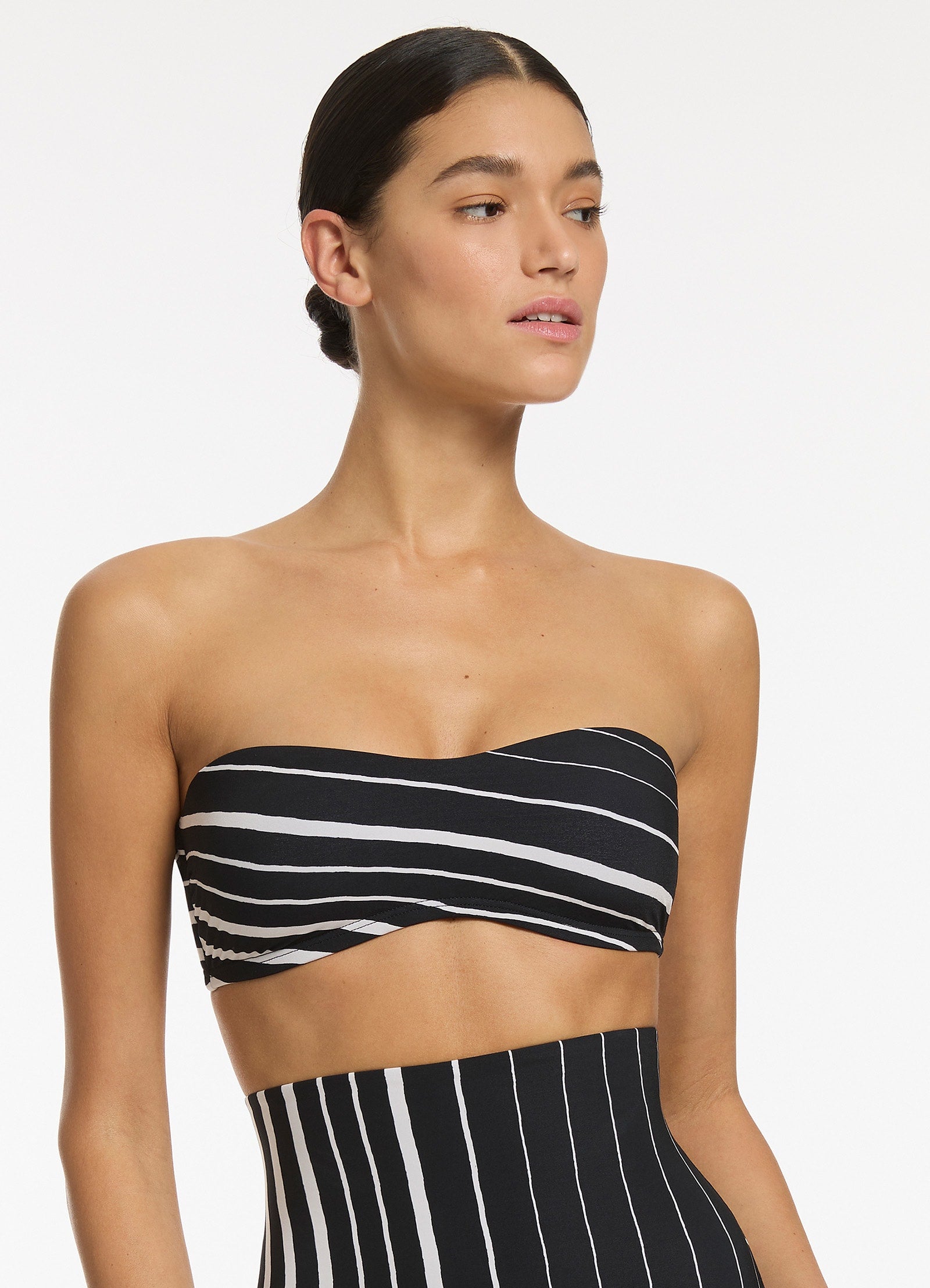 Jets Women’s Lunar Stripe Minimal Bandeau Bikini Top – Black/chalk
