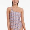 Jets Women’s One Piece Swim Azura Geo One Shoulder One Piece – Retro Orange