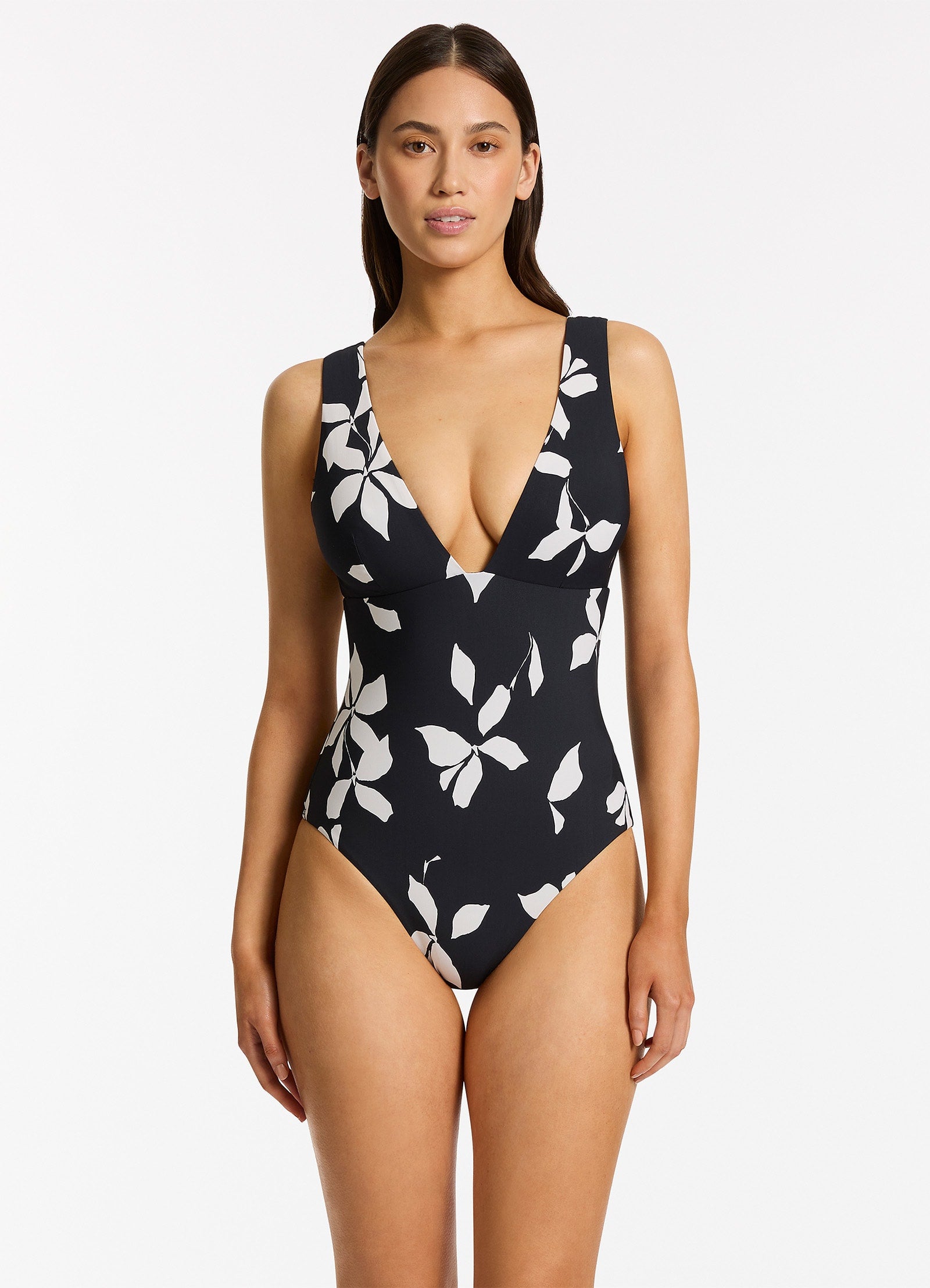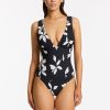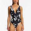 Jets Women’s One Piece Swim Elora Bloom Plunge One Piece – Black