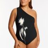 Jets Women’s One Piece Swim Elora One Shoulder One Piece – Black