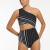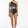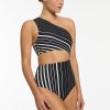 Jets Women’s One Piece Swim Lunar Stripe One Shoulder Cut Out One Piece – Black/chalk