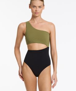 Jets Women’s One Piece Swim Mattala Geo Moulded Bandeau One Piece – Flora | Flora
