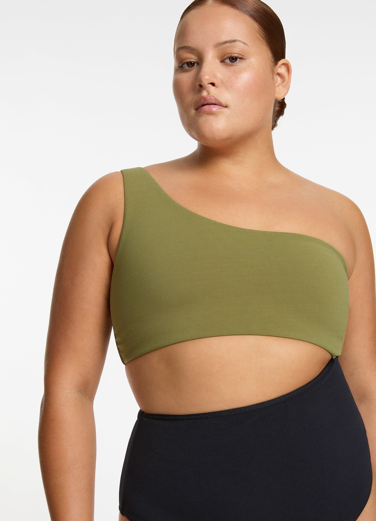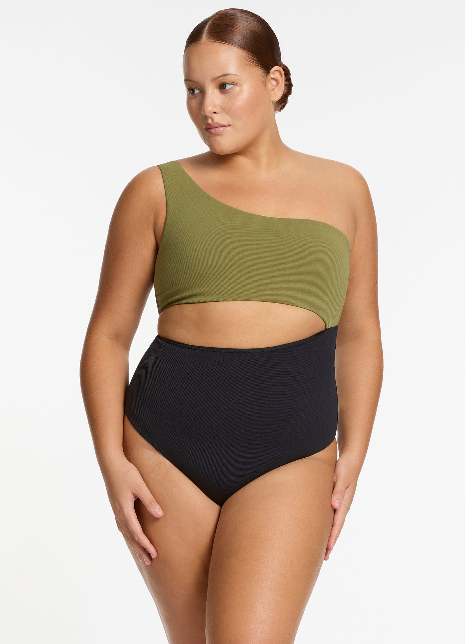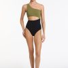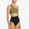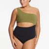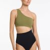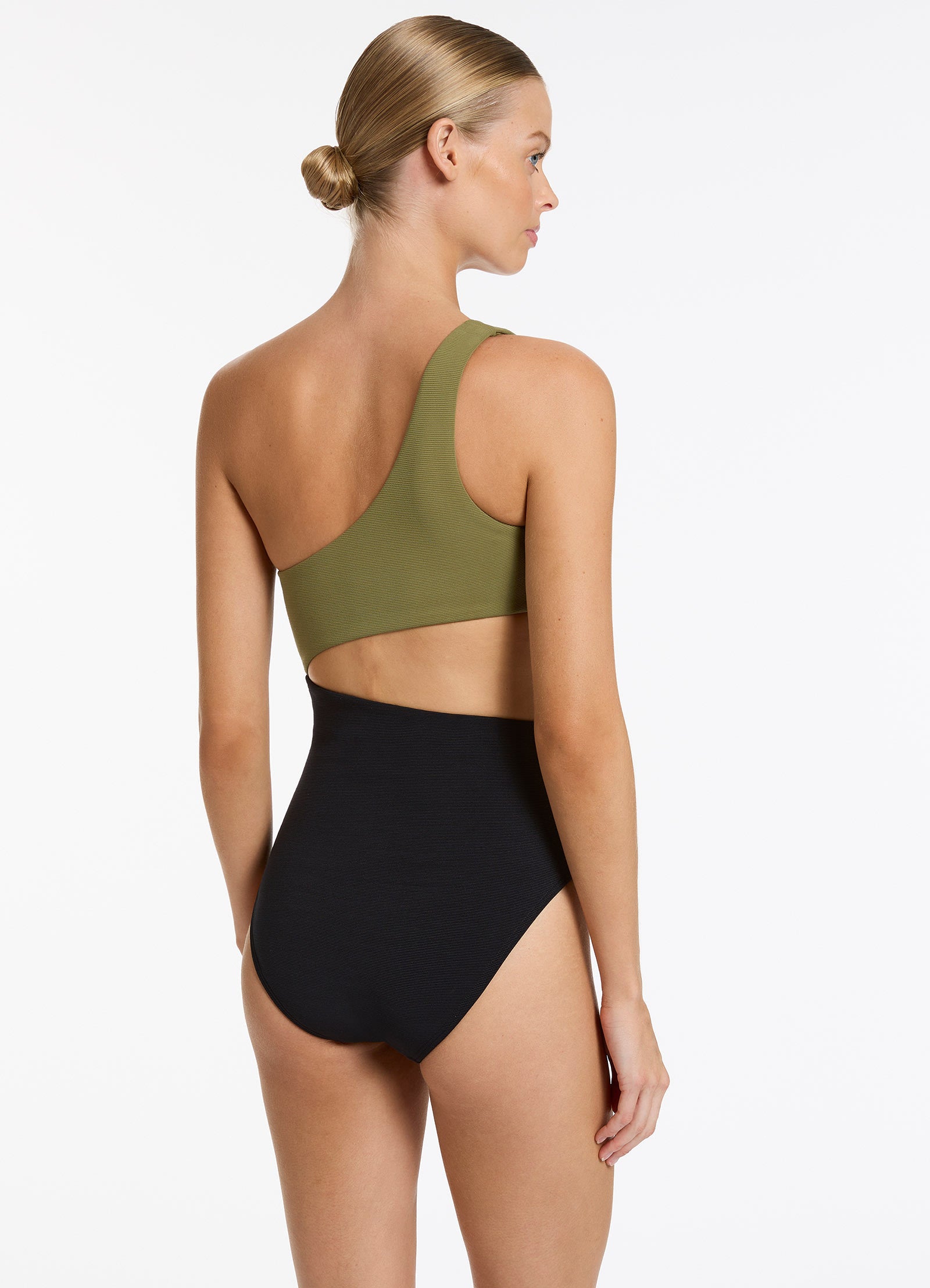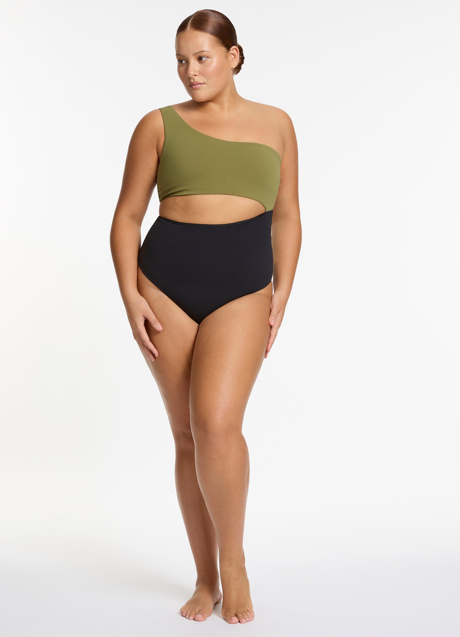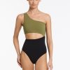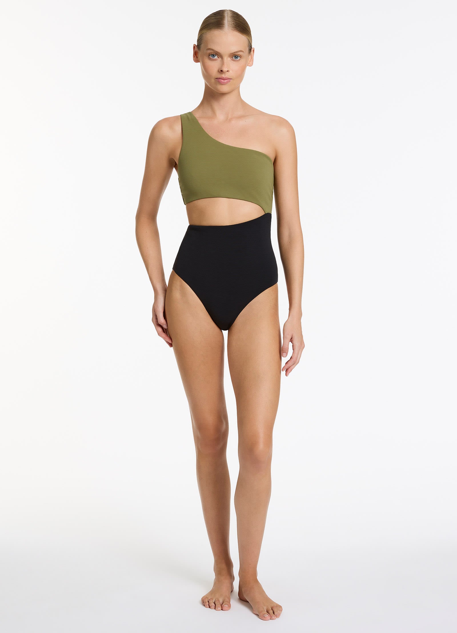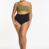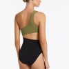 Jets Women’s One Piece Swim Versa Rib One Shoulder One Piece – Black/moss