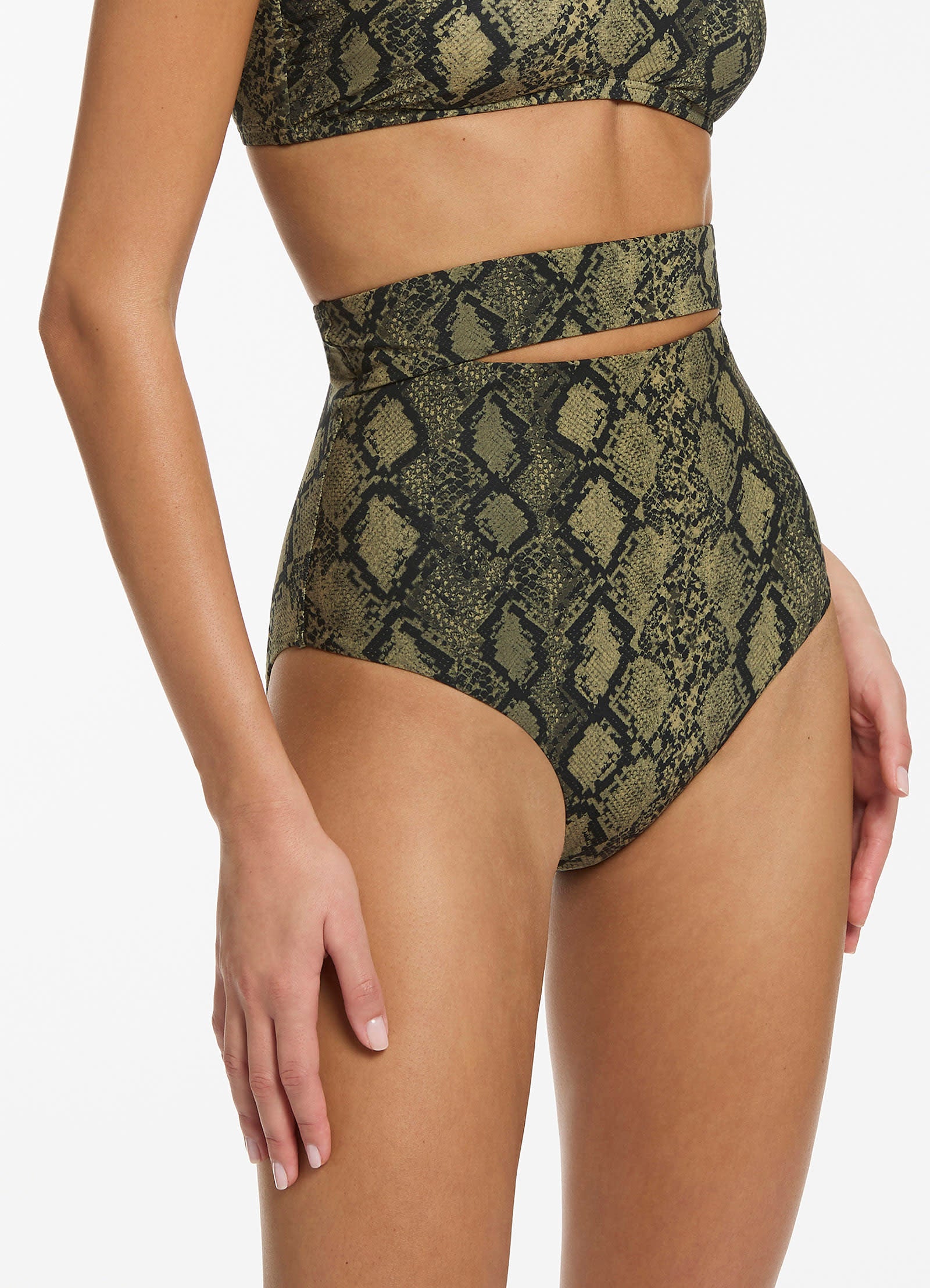 Jets Women’s Python Ultra High Waist Splice Bikini Bottom – Olive