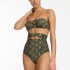 Jets Women’s Python Ultra High Waist Splice Bikini Bottom – Olive