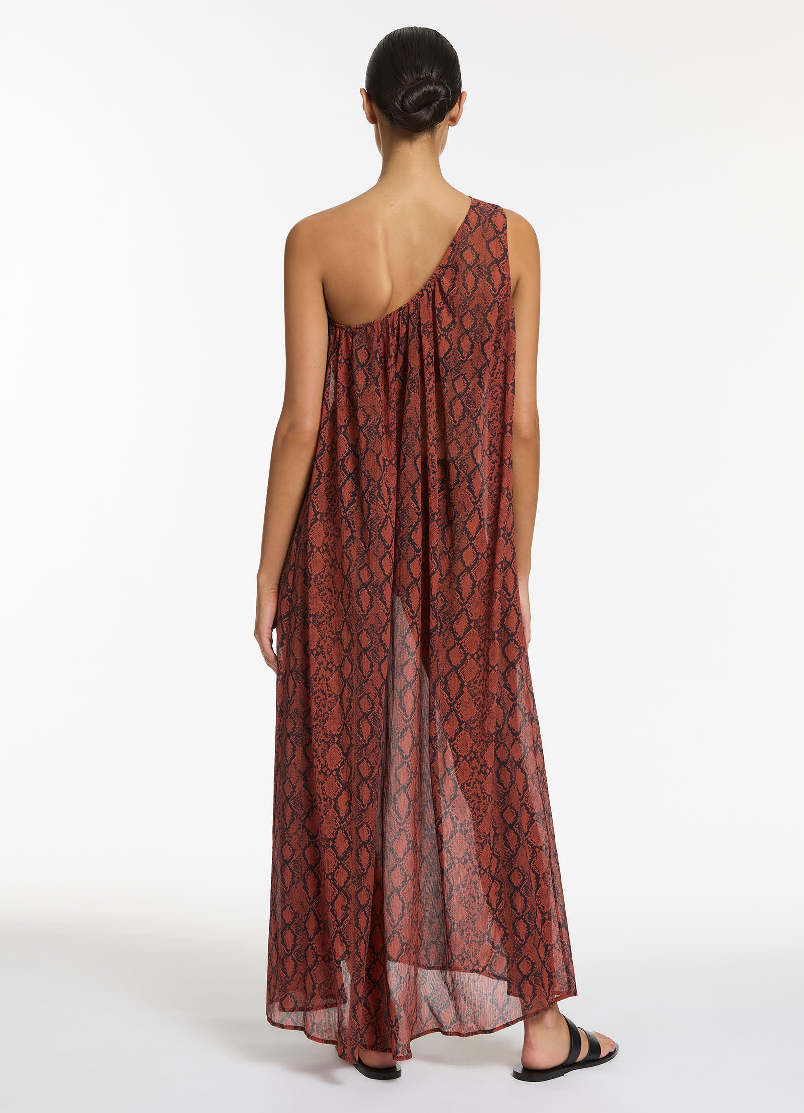 Jets Women’s Resortwear Python Crinkle One Shoulder Maxi Dress – Spice