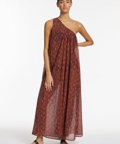 Jets Women’s Resortwear Python Crinkle One Shoulder Maxi Dress – Spice