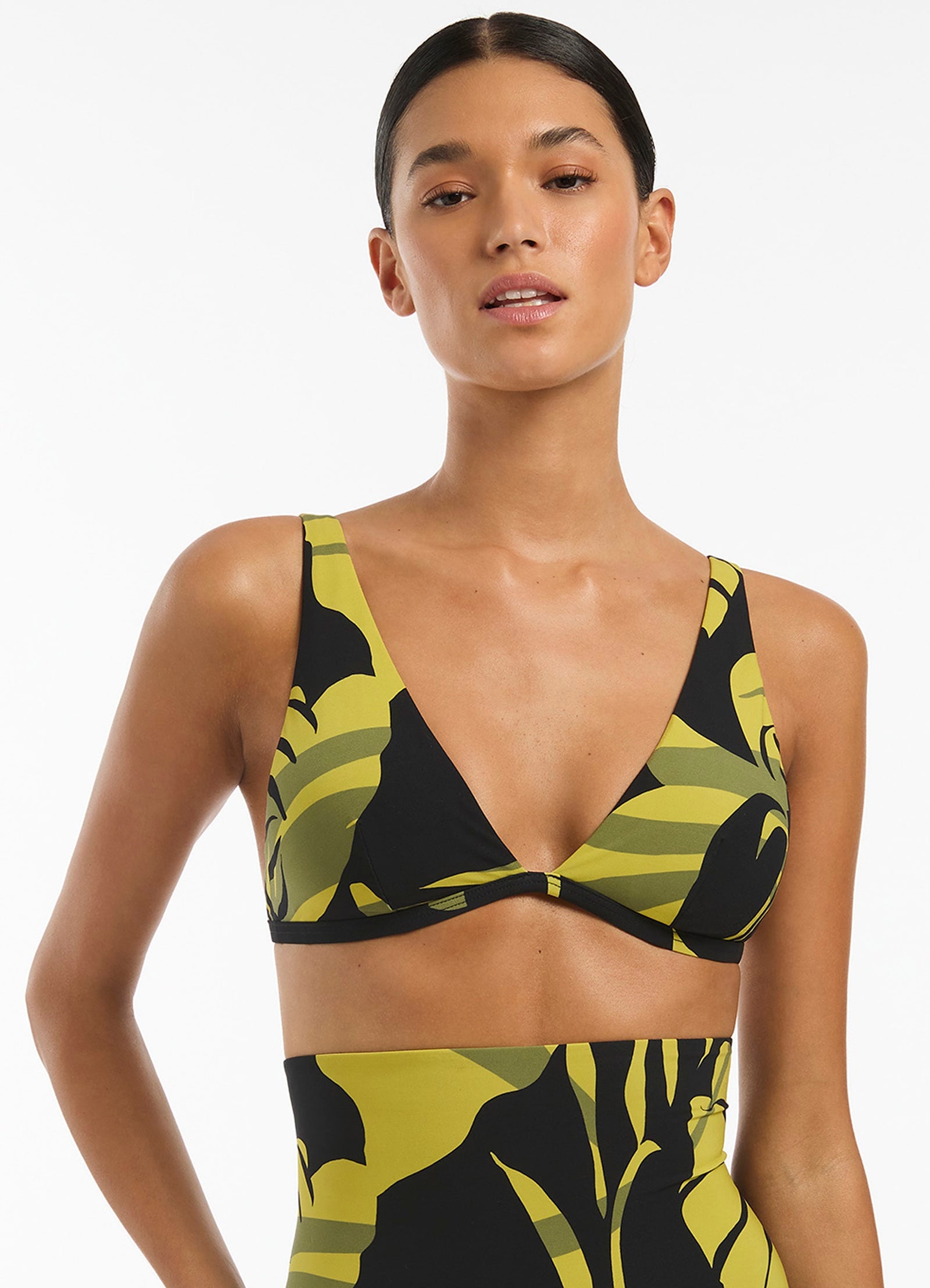 Jets Women’s Shadow Palm Longline Triangle Bikini Top – Black