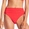 Women’s Jetset Fold Down High Waisted Bikini Bottom – Cherry