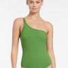 Women’s One Piece Swim Jetset Double Strap One Shoulder One Piece – Palm