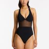 Women’s One Piece Swim Jetset Lure Plunge Halter One Piece – Black